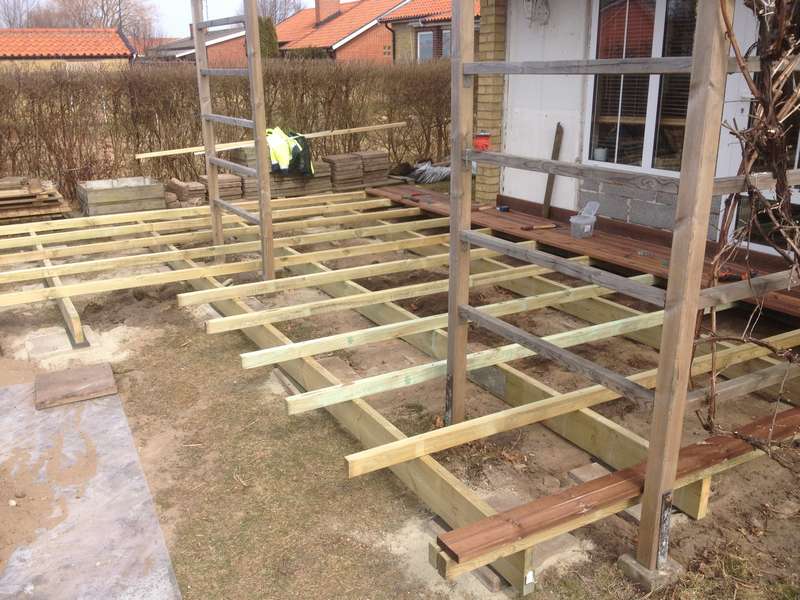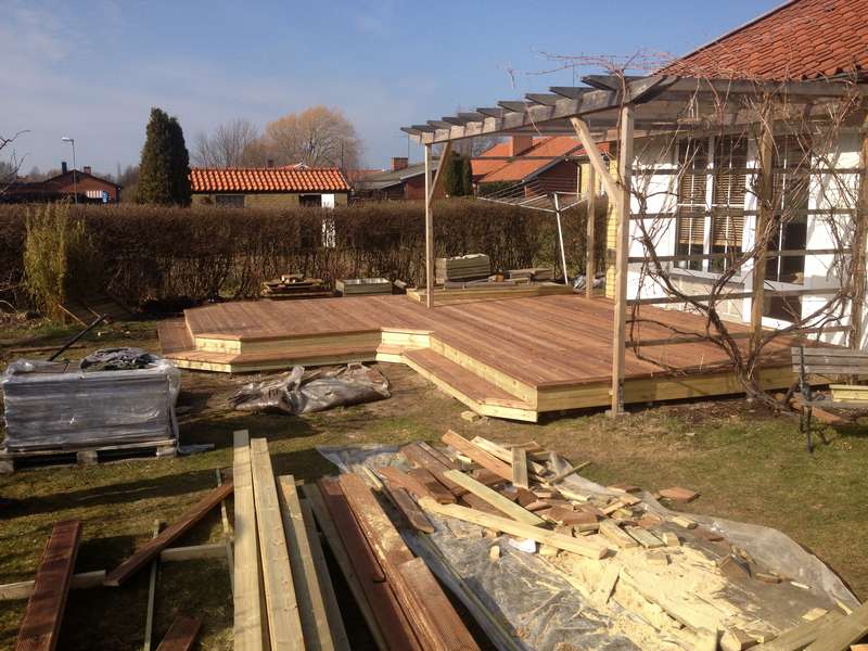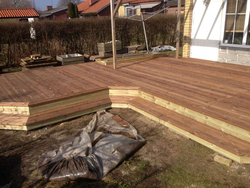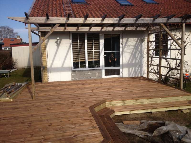 En familj i Bjärred gav oss uppgiften att bygga en terass med trappa i trä. Vi hjälpte dem att bygga