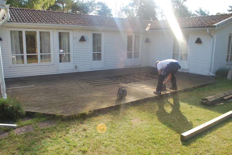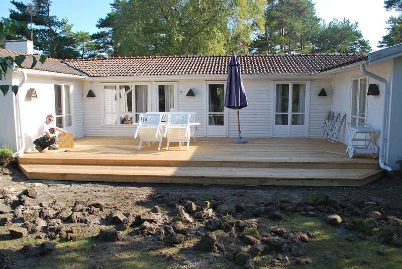 I Höllviken byggde vi en något enklare terass med smarta öppningar för blommor eller andra växter.