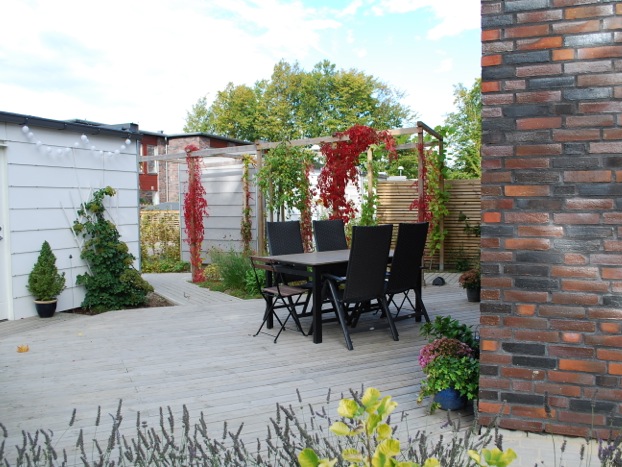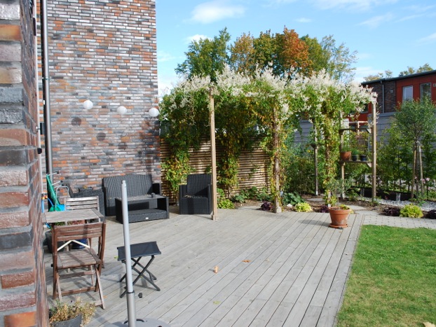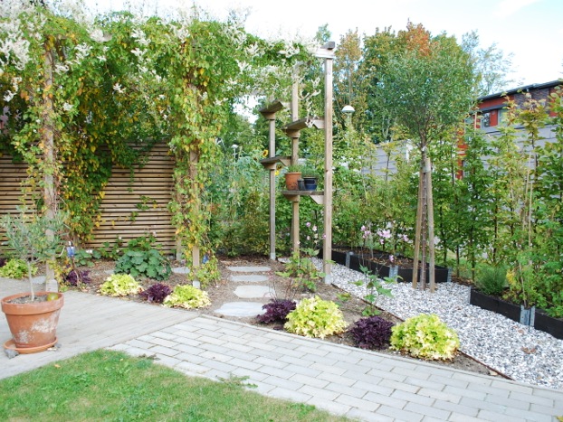 satte vi in pergolor som kompletterar växtligheten väldigt bra.