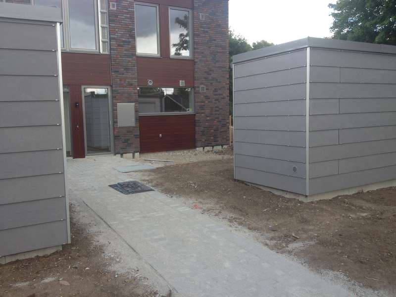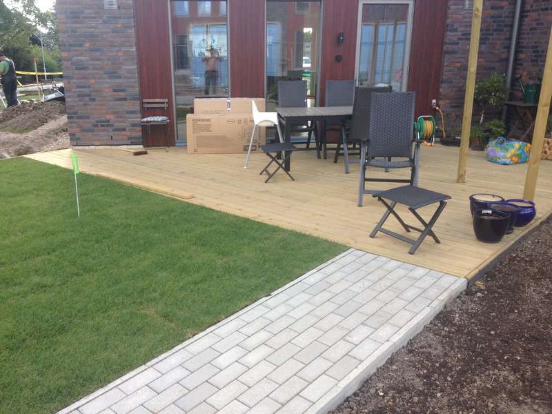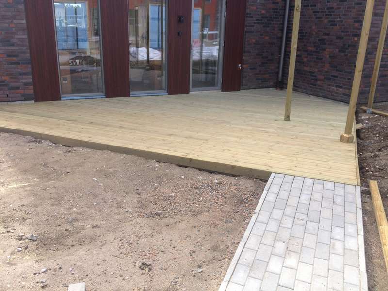 Här utförde vi ännu ett arbete vid ett nybyggt hus, den här gången i Lund. Vi byggde två stora terasser och